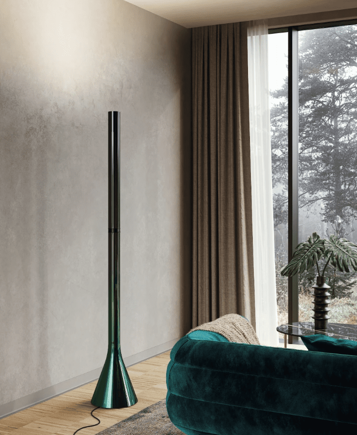 Named after the Italian term for a musical eighth note, the floor lamp Croma embodies dynamism in its slender frame. Departing from tradition, Luca Nichetto inverted the frame, creating a revolutionary design. With four elegant finishes, Croma offers powerful illumination and a dim-to-warm feature, suited for various environments.