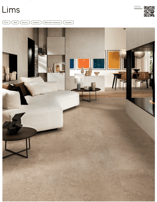 The Lims collection features the authentic appeal of the most famous and sought-after Limestones, very diverse in their composition and origin. French Hauteville, Portuguese Moleanos, German Jura, Italian stone from Vicenza and Slovenian Lipika merge into surfaces with unique, unrepeatable graphics that convey the memory of times and places where the original stone was formed and sedimented.