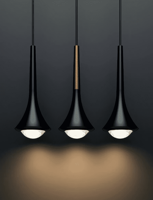 Rain descends from the ceiling with a linear flow, enhancing its sleek conical shape. This metal suspension lamp, with LED light projected through a convex lens, offers simplicity, elegance, and brightness, perfect alone or as part of a design.