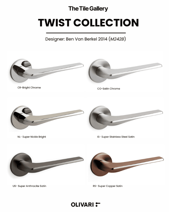 Twist embodies simplicity through complex geometry, merging and integrating two distinct sets of features. In terms of lever anatomy, the shaft seamlessly transitions from cylindrical to flat, fluidly transforming from a tubular structure to a smooth, planar surface.